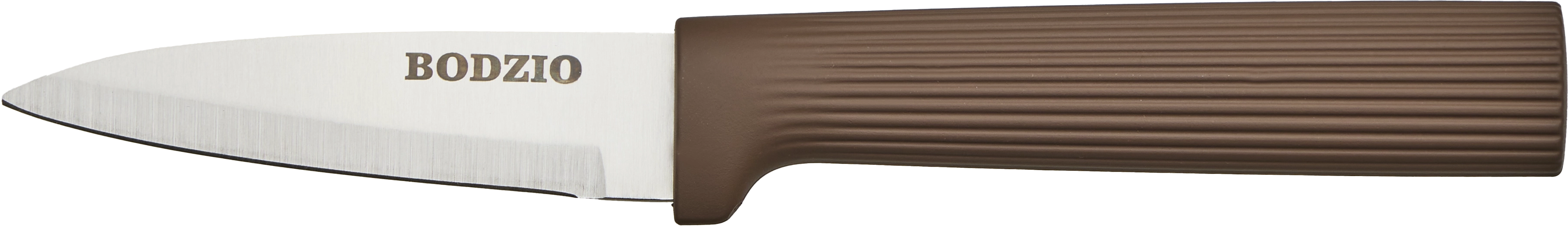 Nóż do obierania RIFLE 16-5 w kolorze brązowym to kompaktowe i precyzyjne narzędzie, idealne do obierania owoców i warzyw oraz drobnych prac kuchennych. Ostrze o długości 9 cm umożliwia wygodne manewrowanie i dokładne cięcie. Brązowa rękojeść dodaje całości eleganckiego charakteru i doskonale pasuje do klasycznego wystroju kuchni.