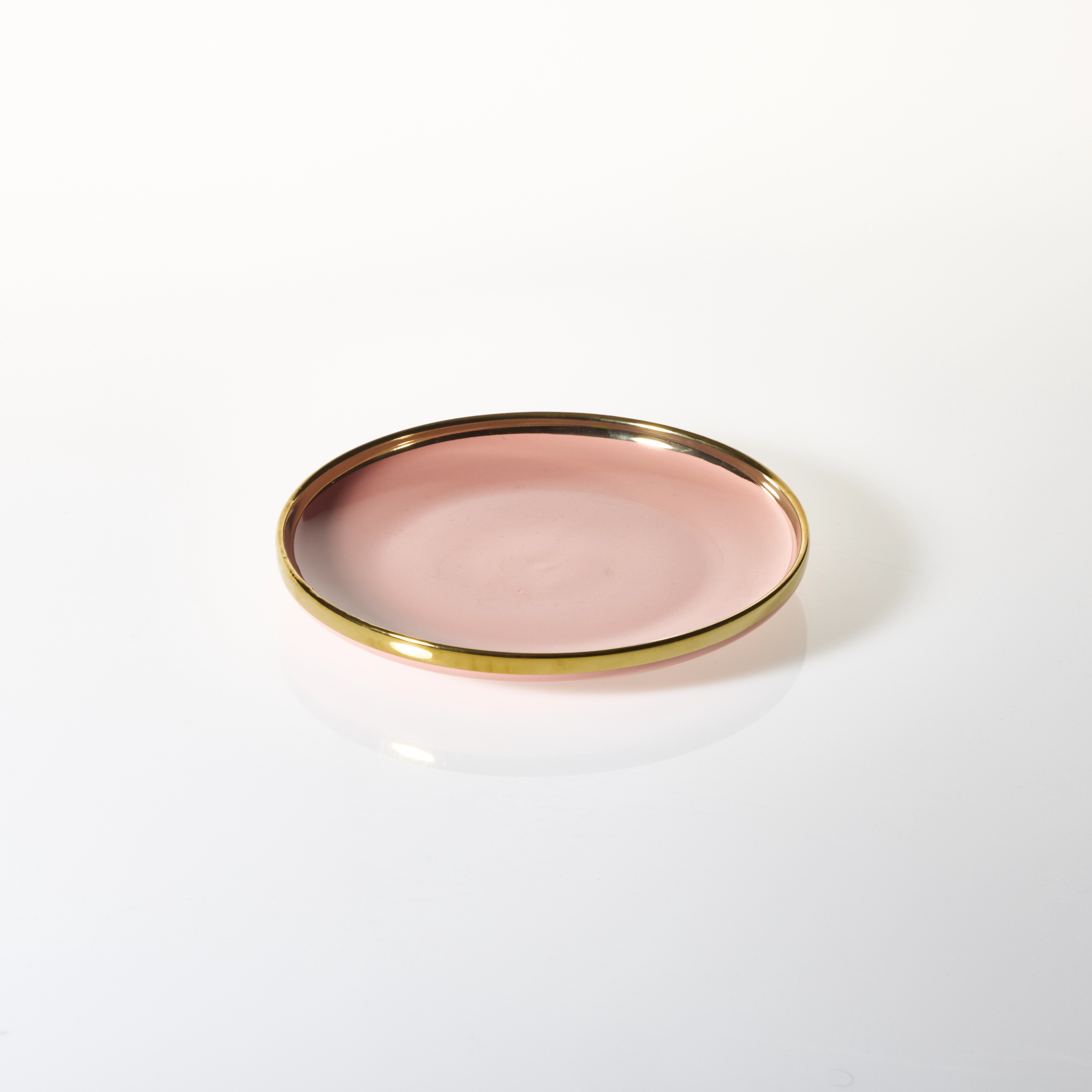 Talerz deserowy Cindy różowy ze złotym paskiem