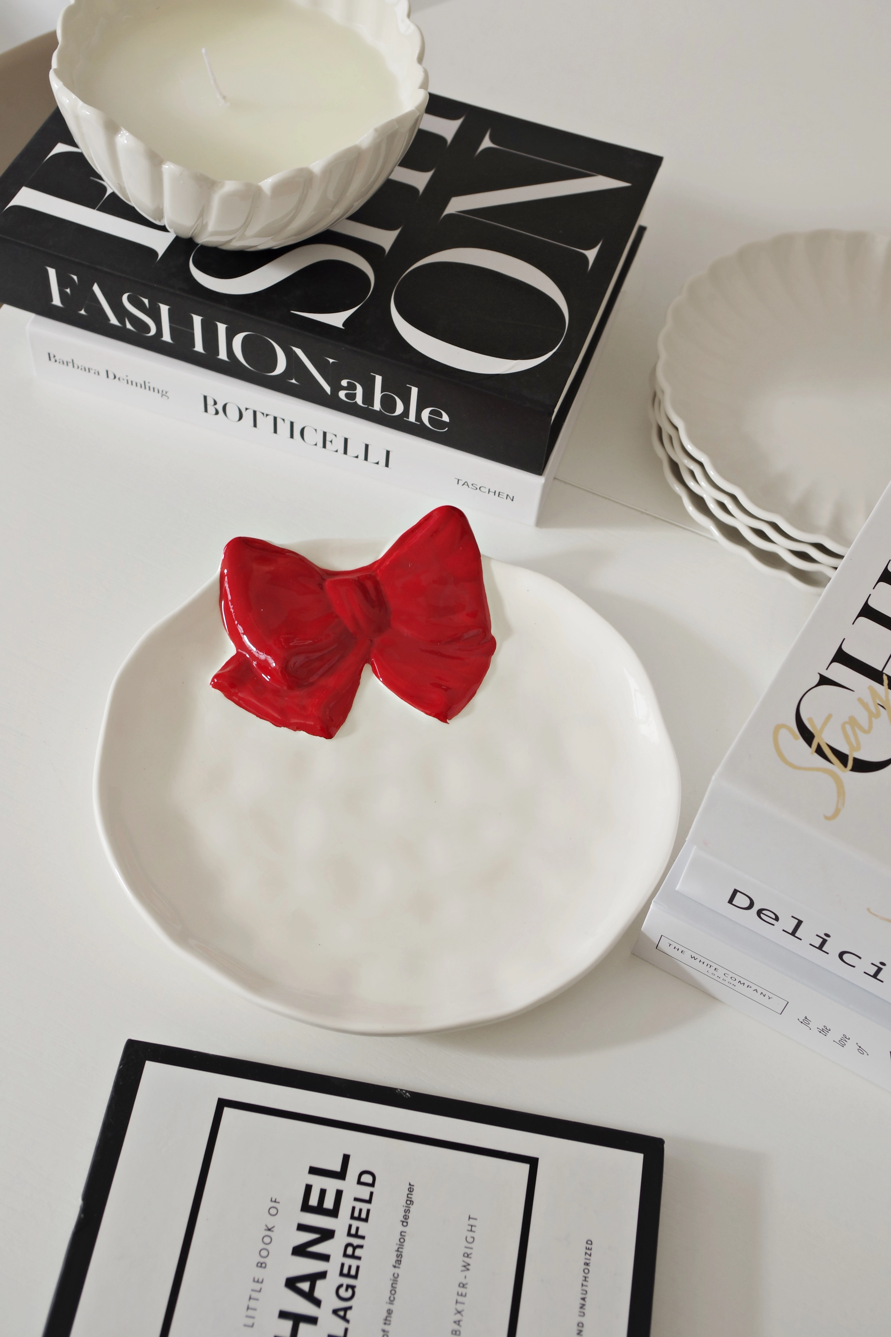 Talerz deserowy „BELLA”-167 w kolorze białym z czerwoną kokardką to elegancki i efektowny element zastawy, który przyciąga uwagę wyjątkowym detalem. Trójwymiarowa, błyszcząca kokardka nadaje mu dekoracyjny charakter, czyniąc go nie tylko praktycznym naczyniem, ale również stylową ozdobą stołu.