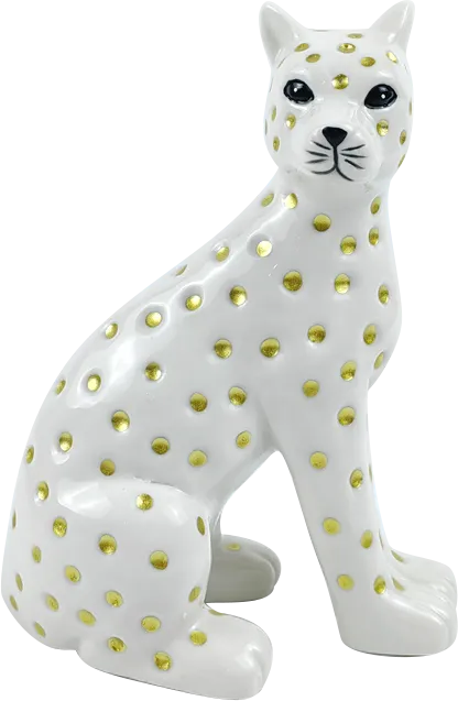 Figurka ceramiczna Animal 105 przedstawiająca lamparta w kolorze białym i złotym to elegancka dekoracja, która doda charakteru każdemu wnętrzu. Wymiary 12,5 x 7,5 x 17,5 cm sprawiają, że jest to doskonały wybór do postawienia na półce, stole czy komodzie. Połączenie białego koloru z subtelnymi złotymi akcentami nadaje figurce nowoczesny i luksusowy wygląd, który będzie się pięknie prezentować w różnych stylach aranżacyjnych.