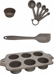 Zestaw kuchennych akcesoriów silikonowych z kolekcji Morelo to kompleksowe rozwiązanie dla każdej kuchni, oferujące funkcjonalność i wygodę. W skład zestawu wchodzą: szpatułka, zestaw miarek o różnych rozmiarach, foremka do pieczenia oraz komplet foremek do pieczenia muffinów. Każdy z elementów został zaprojektowany z myślą o łatwości użytkowania i trwałości, co czyni ten zestaw idealnym wyborem do przygotowywania różnorodnych potraw i wypieków.