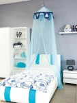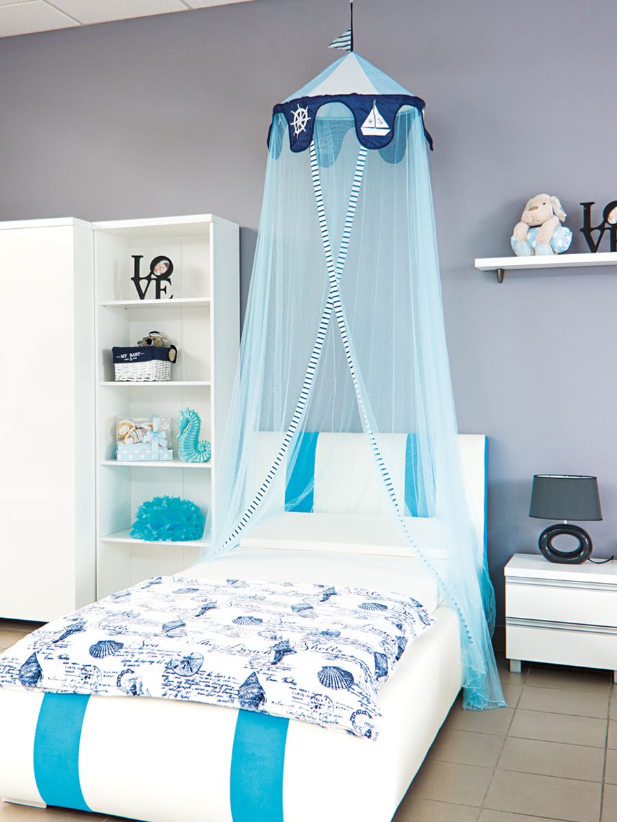 Moskitiera Tendi do pokoju dziecięcego to praktyczny dodatek, który zapewnia komfortowy sen. Wykonana w 100% z poliestru, jest łatwa w montażu i przechowywaniu dzięki możliwości składania do torby. Przed pierwszym użyciem zaleca się zapoznanie z instrukcją montażu. Idealna do zawieszenia nad łóżkiem, dodaje uroku i funkcjonalności w pokoju dziecięcym.