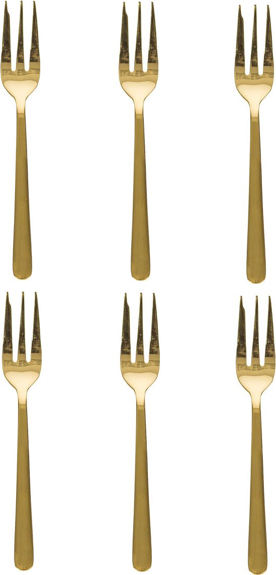 Praktyczny zestaw widelczyków do ciasta Goldi w kolorze złotym wykonanych z najwyższej jakości stali nierdzewnej. W komplecie znajduje się 6 sztuk.