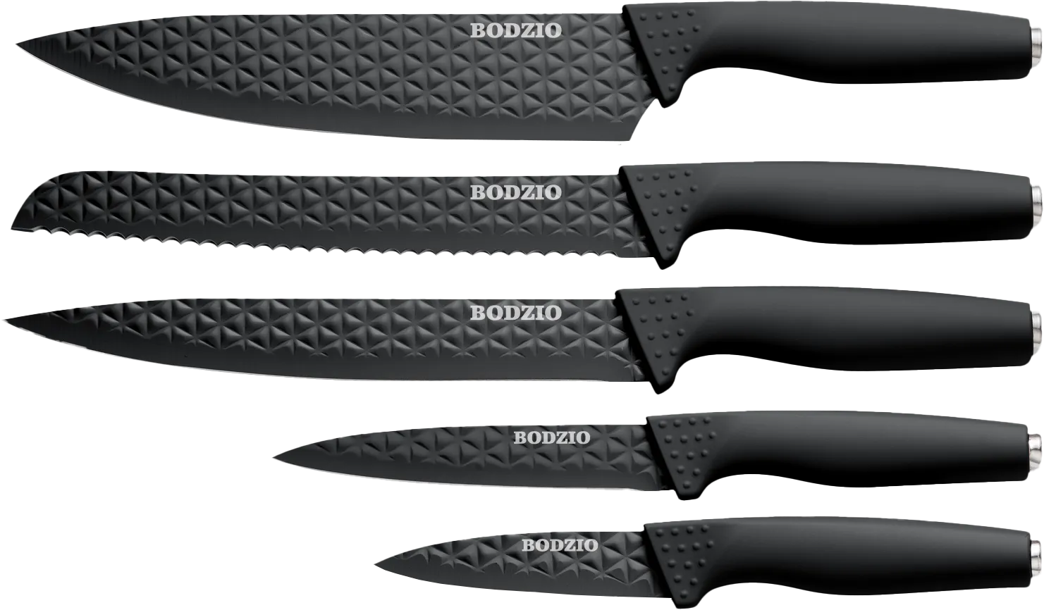 Zestaw noży w bloku MODERN KITCHEN 15 w kolorze czarnym to praktyczne i stylowe wyposażenie każdej kuchni. W komplecie znajduje się 7 elementów, które sprawdzą się przy różnych zadaniach – od krojenia pieczywa, przez siekanie warzyw, po precyzyjne obieranie. Noże umieszczone są w eleganckim, czarnym bloku, który ułatwia przechowywanie i stanowi nowoczesny akcent na kuchennym blacie. Idealny wybór dla osób ceniących funkcjonalność i spójny design.