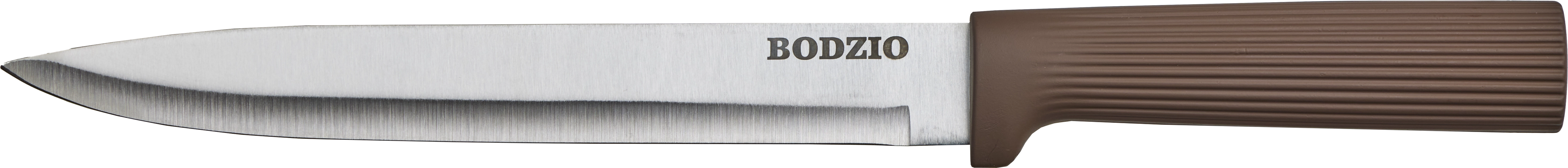 Nóż do krojenia RIFLE 16-3 w kolorze brązowym doskonale sprawdzi się przy porcjowaniu mięs, krojeniu wędlin czy większych warzyw. Ostrze o długości 20 cm zapewnia płynne i precyzyjne cięcie. Brązowy uchwyt nadaje mu elegancki wygląd i dobrze komponuje się z klasycznym wyposażeniem kuchni. To praktyczne narzędzie do codziennego gotowania.