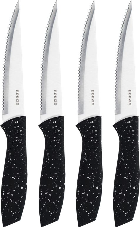 Zestaw 4 noży do steków Palia z ostrzem ze stali nierdzewnej o grubości 1,2 mm oraz rączką pokrytą przyjemnym w dotyku tworzywem imitującym marmur.
