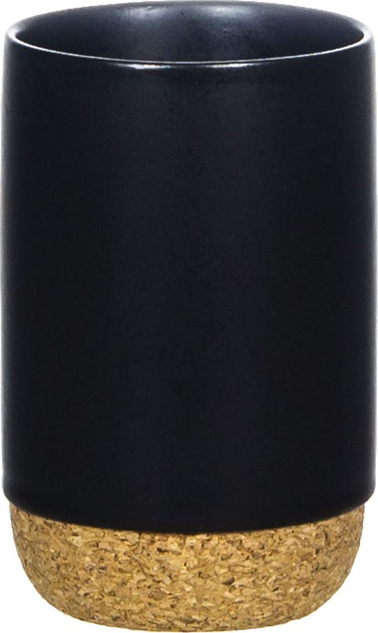 Funkcjonalny, czarny kubek z korkowym spodem z kolekcji Perlona do zastosowań w łazience.