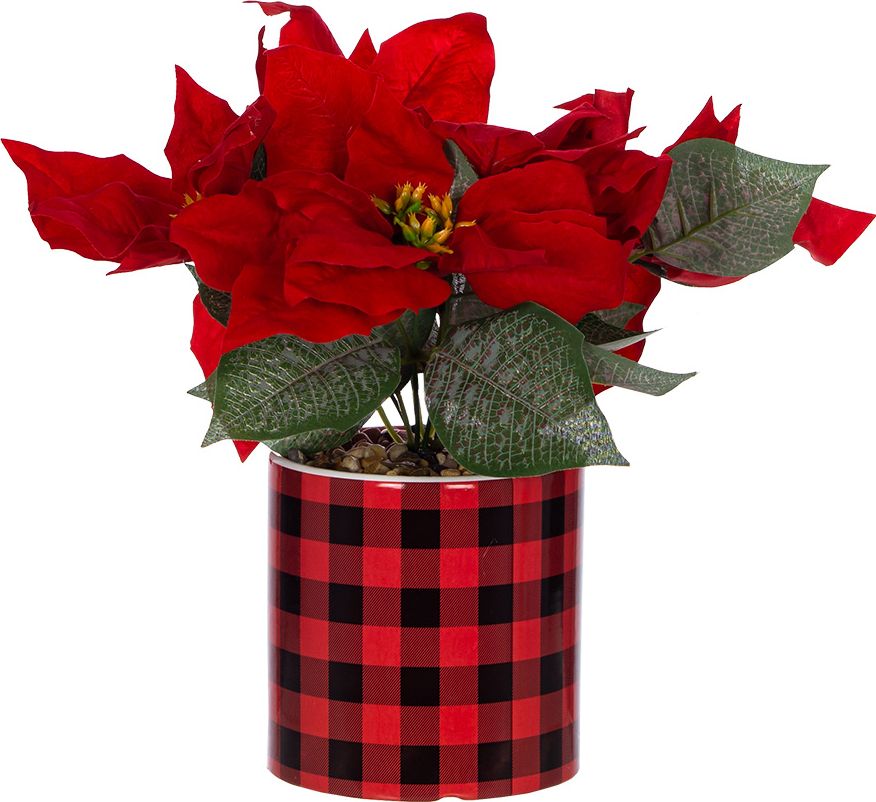 Realistycznie wyglądająca ozdoba bożonarodzeniowa sztuczna gwiazda betlejemska z kolekcji Merry została wykonana z wysokiej jakości materiałów imitujących wygląd prawdziwej rośliny. Niezwykły charakter nadaje jej ceramiczna doniczka w kratkę, z którą tworzy doskonałą, nowoczesną kompozycję. Wspaniale będzie komponowała się z dodatkami wyposażenia wnętrz w kuchni, salonie oraz sypialni.