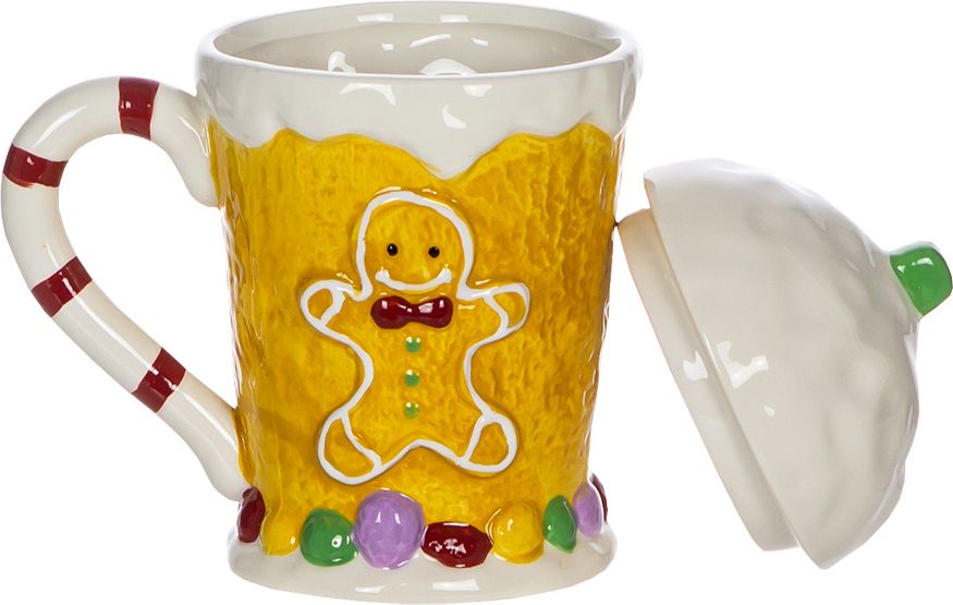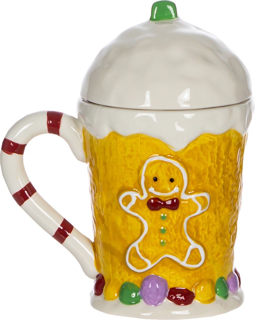 Uroczy kubek świąteczny Prestini z wzorem świątecznego piernika oraz ładnym wieczkiem, będzie wspaniałym świątecznym dodatkiem, bądź prezentem dla bliskiej osoby.
