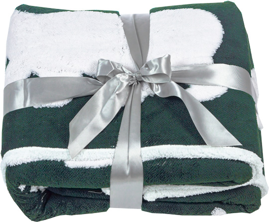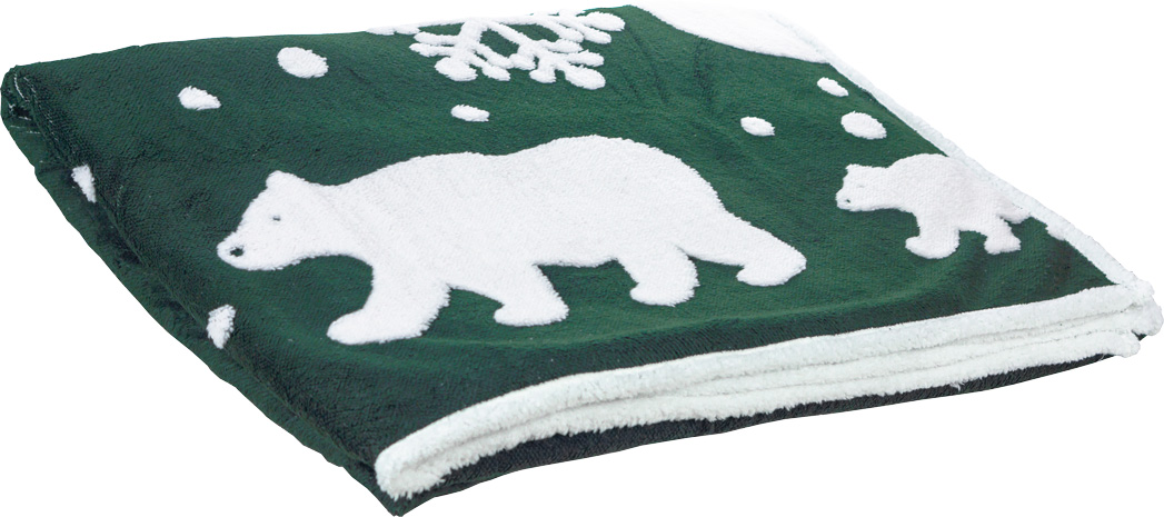 Komfortowy, miły w dotyku oraz ciepły koc z dekoracyjnym wzorem w motywie świątecznym.