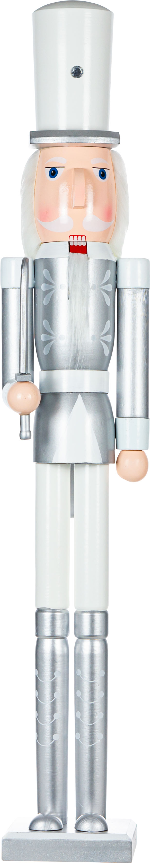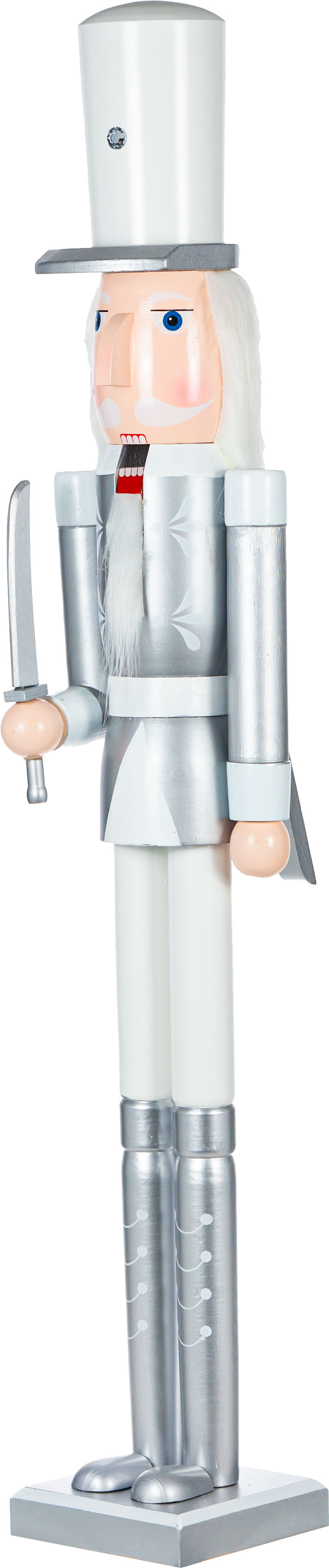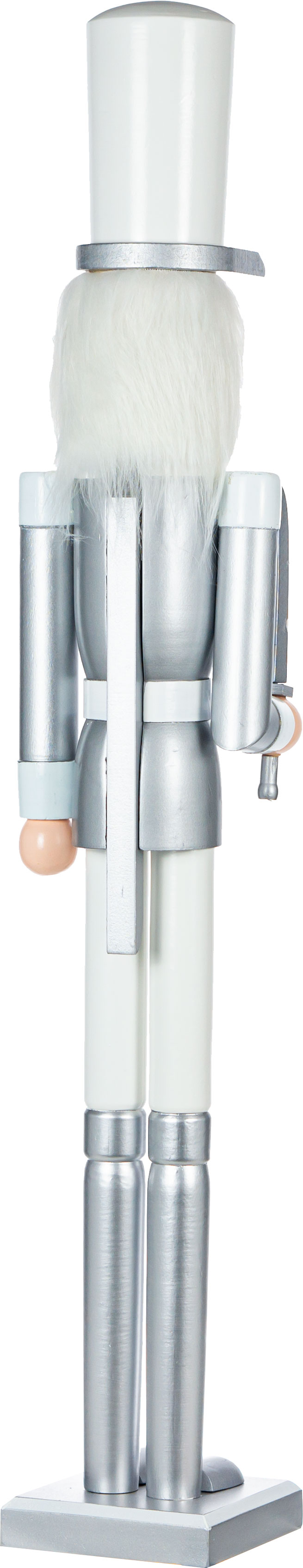 Stylowy Dziadek do Orzechów w biało-srebrnej kolorystyce – elegancka ozdoba świąteczna, której srebrne detale nadają blasku, idealnie współgrając z klasyczną bielą. Subtelny i elegancki akcent na święta.