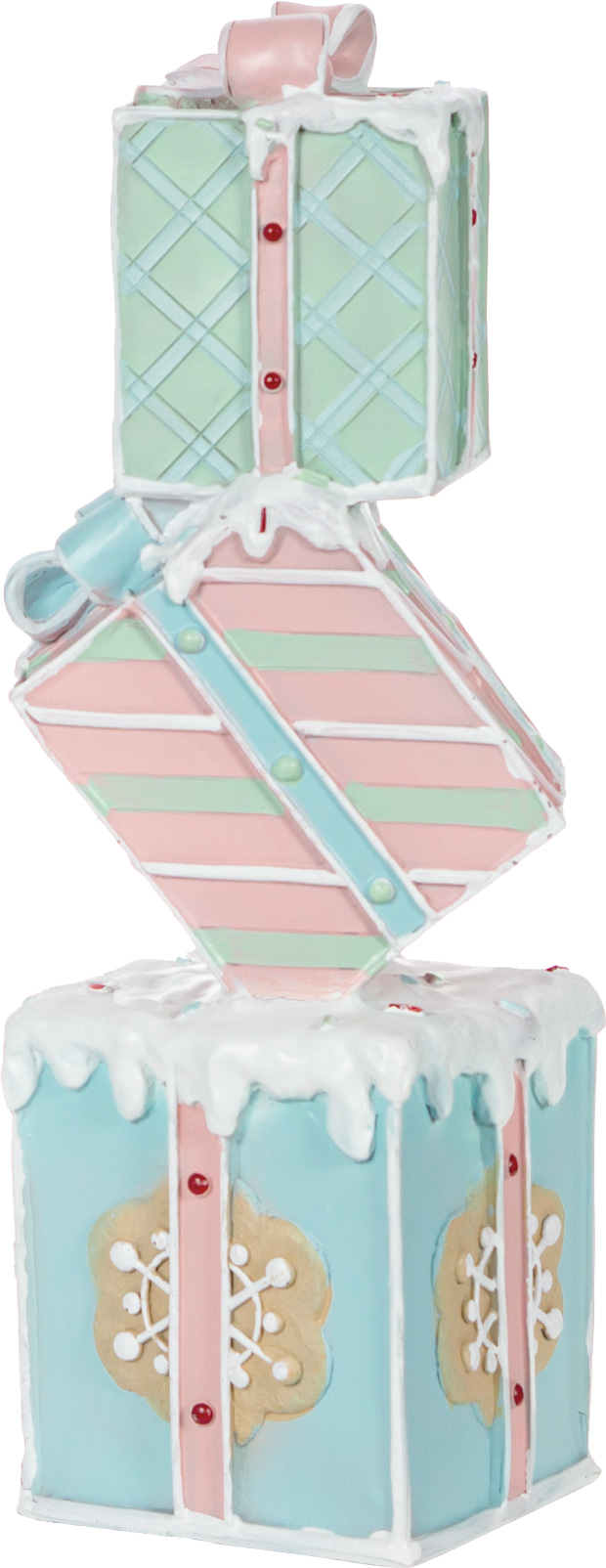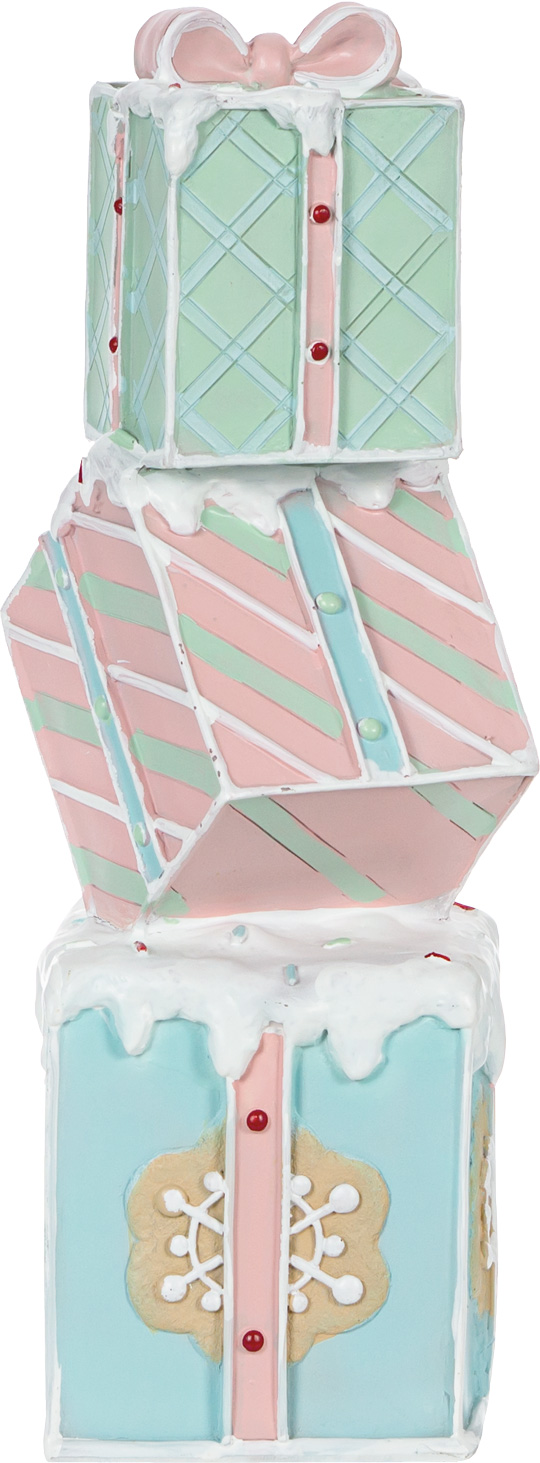 Ozdoba świąteczna z kolekcji „Pastel Christmas” – urocze prezenty w delikatnych, pastelowych odcieniach. Idealne do wnętrz w jasnej, przytulnej stylistyce, dodają aranżacji subtelnego blasku i magii świąt. Te dekoracyjne prezenciki to wyjątkowy, lekki akcent bożonarodzeniowy, który wnosi spokój i radość do każdego zakątka domu.