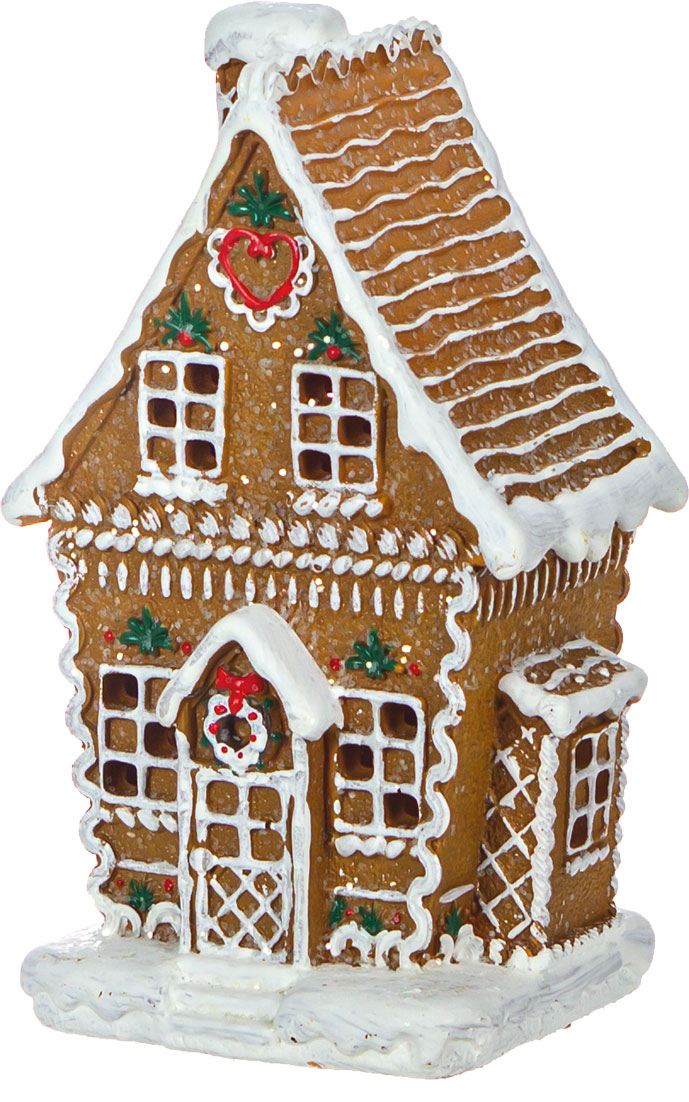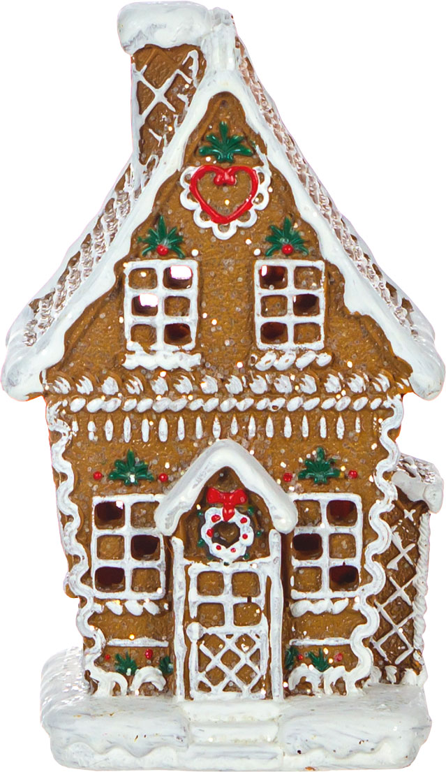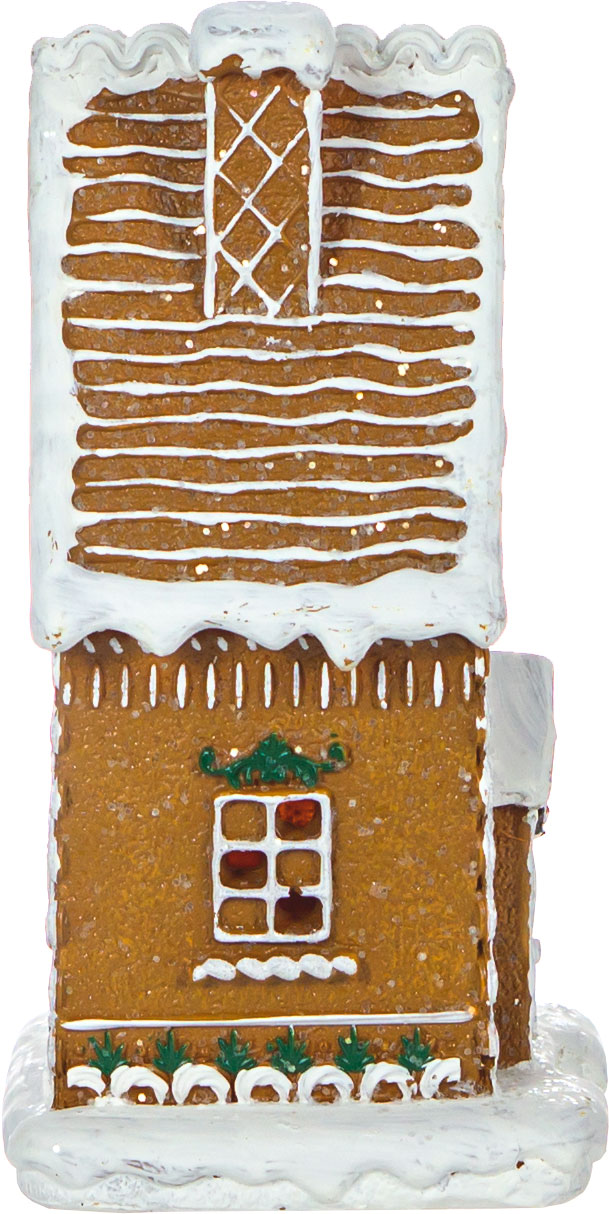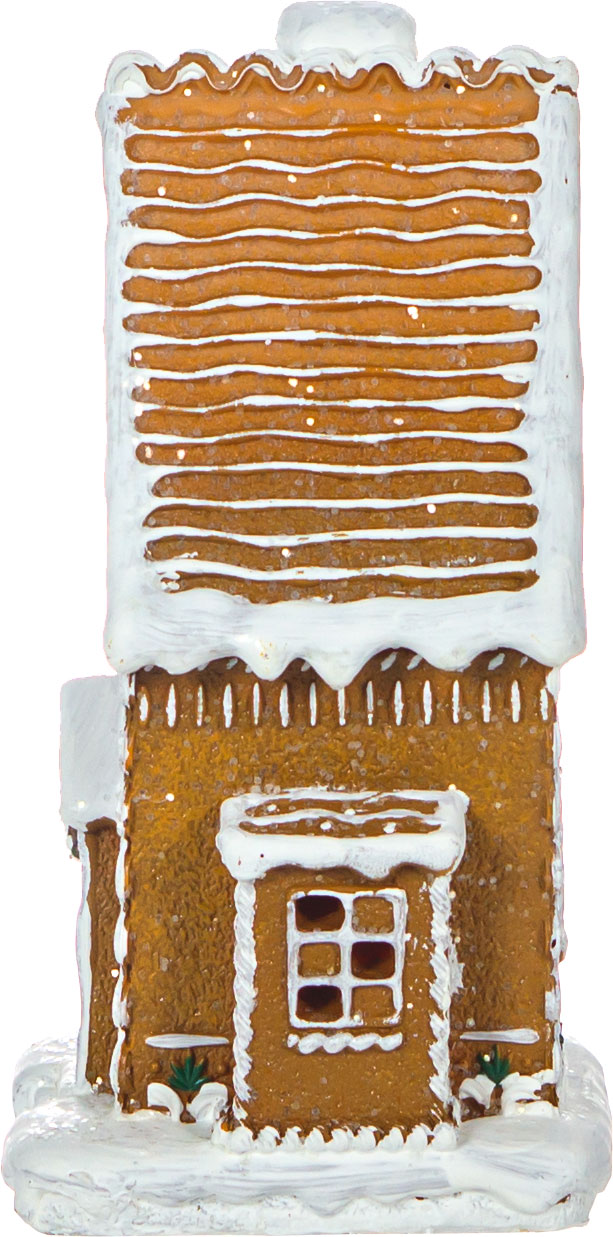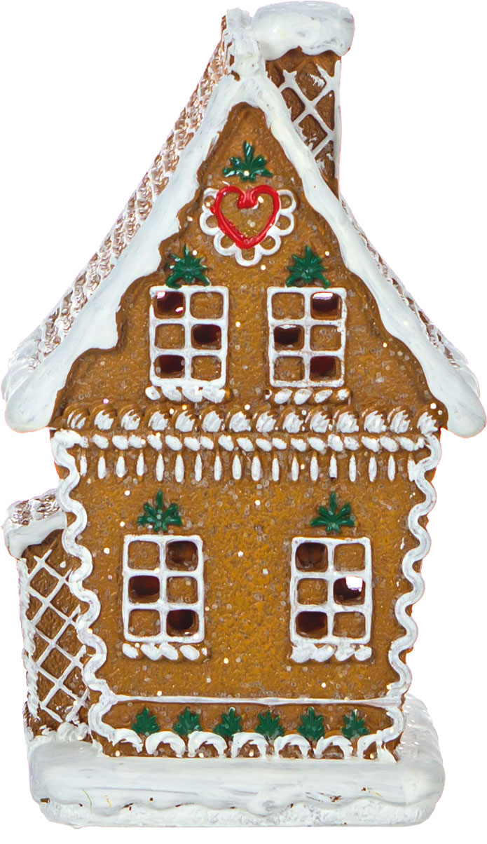 Ozdoba świąteczna "Ginger" – przytulny domek z oświetleniem LED, który wnosi magię Bożego Narodzenia do wnętrza. Stylizowany na tradycyjny domek z piernika, z misternymi detalami i delikatnym, ciepłym światłem, tworzy atmosferę pełną świątecznego uroku. Idealny jako nastrojowy akcent, który rozświetli zimowe wieczory.