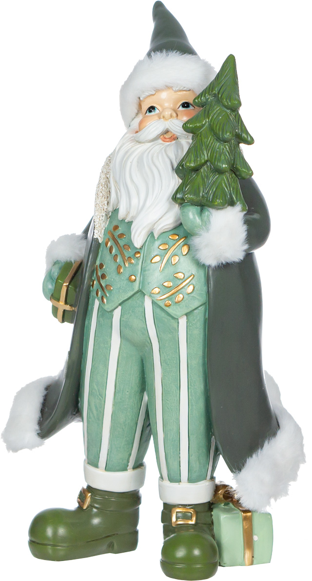 Ozdoba bożonarodzeniowa Merry przedstawia Mikołaja w eleganckich odcieniach bieli, zieleni i złota. Jest to stylowy akcent świąteczny, który doskonale wpasuje się w różne aranżacje bożonarodzeniowe, dodając wnętrzu uroku i świątecznego blasku. Mikołaj w tej kolorystyce łączy klasykę z nutą nowoczesności, tworząc przytulną atmosferę świąt.