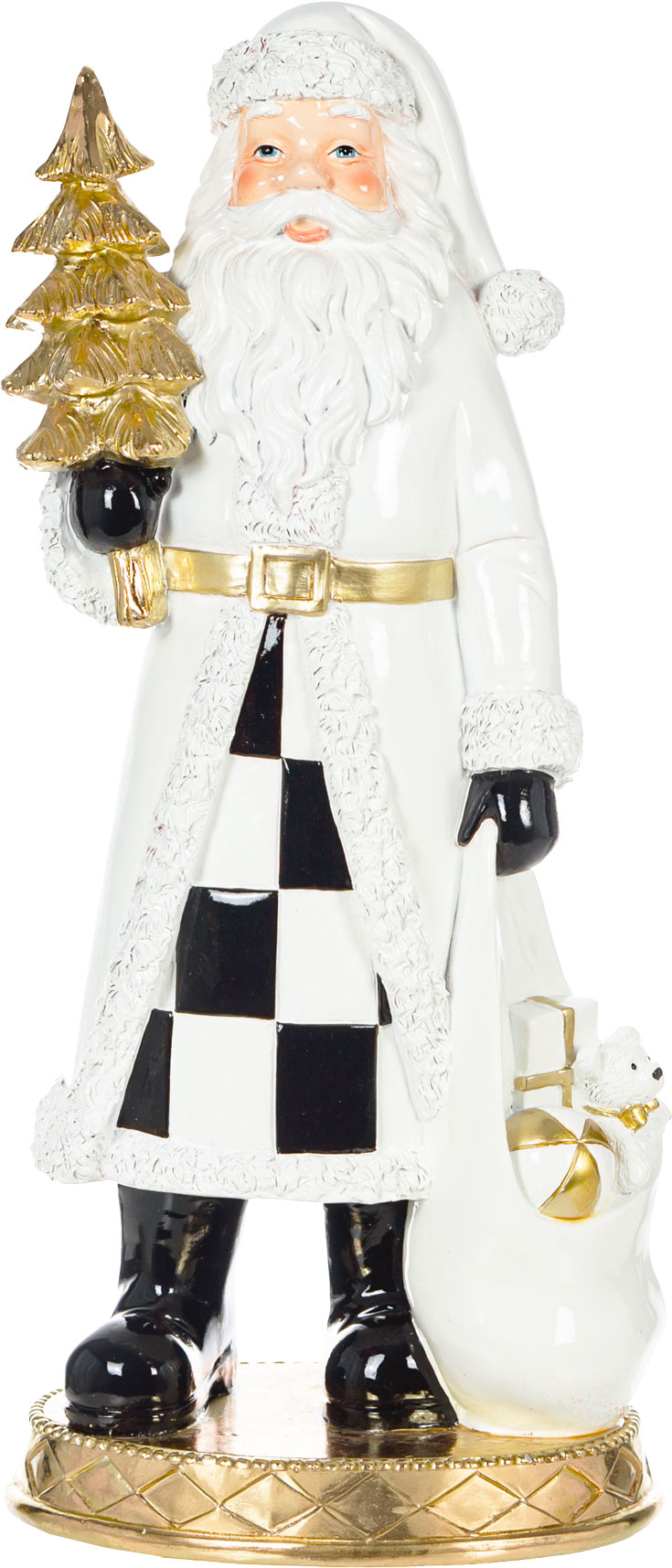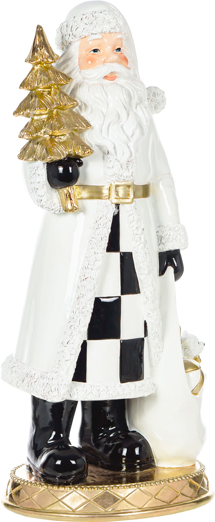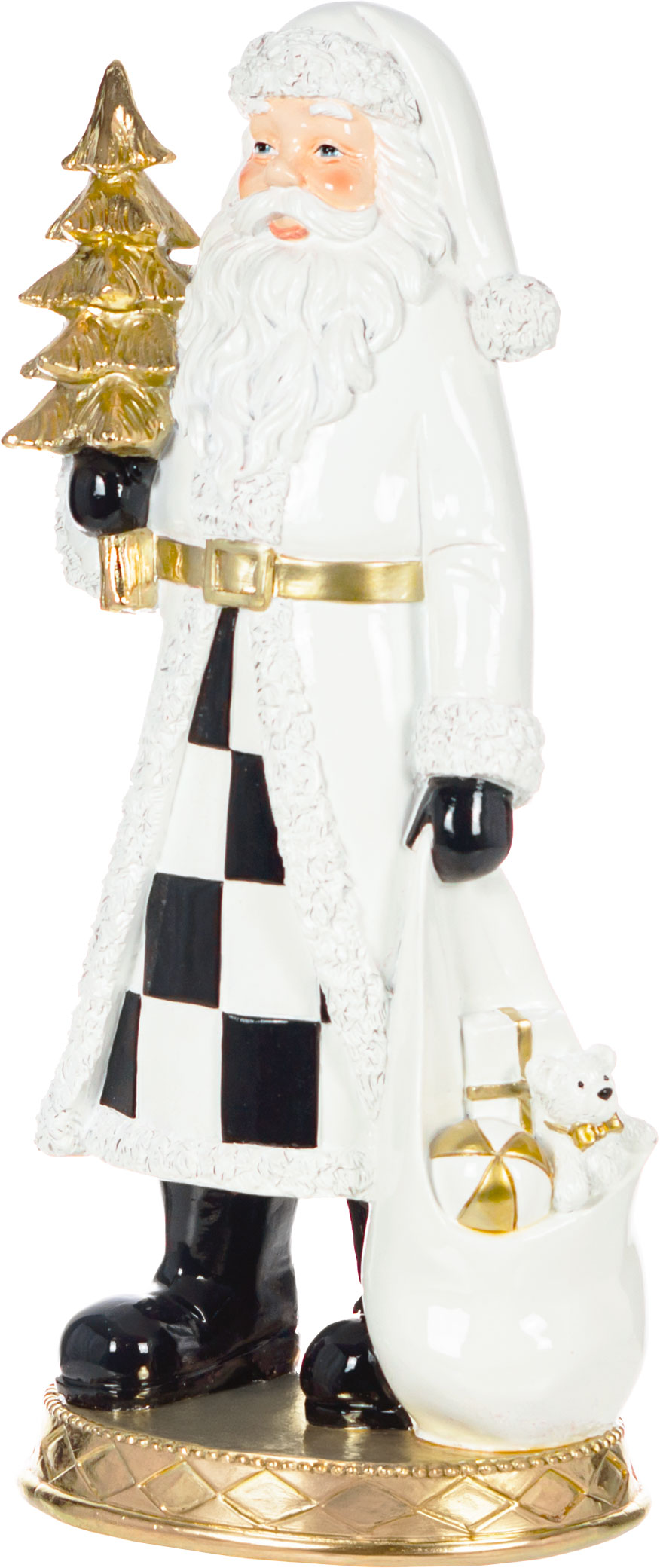 Ozdoba bożonarodzeniowa Merry to wyjątkowy Mikołaj w kolorach biało-czarno-złotym. Ta stylowa dekoracja wyróżnia się eleganckim połączeniem kolorów, które dodają jej nowoczesnego, a jednocześnie świątecznego charakteru. Idealnie pasuje do wyrafinowanych aranżacji bożonarodzeniowych, wprowadzając do wnętrza nieco magii i świątecznego blasku. Doskonale sprawdzi się jako ozdoba na komodzie, półce czy przy choince.