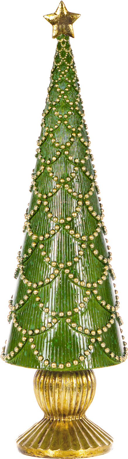 Ozdoba bożonarodzeniowa Merry to elegancka choinka w kolorach zielono-złotym. Jej klasyczna kolorystyka doskonale oddaje świąteczny klimat, dodając wnętrzu ciepła i blasku. Ta dekoracja świetnie sprawdzi się na półce, komodzie lub świątecznym stole, wprowadzając odrobinę naturalnego akcentu połączonego z elegancją złota.