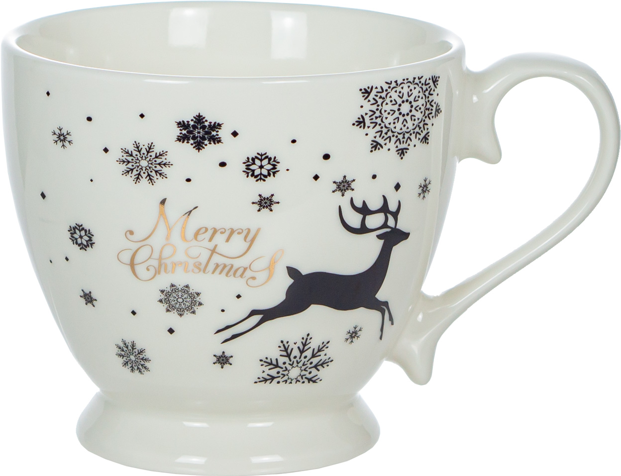 Kubek "Christmas" w eleganckiej biało-złoto-czarnej kolorystyce to doskonały wybór na zimowe wieczory. Jego pojemność 450 ml sprawia, że idealnie nadaje się do serwowania ulubionej kawy, herbaty lub gorącej czekolady. Złote detale dodają mu świątecznego blasku, a nowoczesne akcenty w czerni podkreślają styl i klasę. To wyjątkowy kubek, który wprowadzi do Twojej kuchni ciepłą, bożonarodzeniową atmosferę – idealny zarówno na co dzień, jak i na prezent.