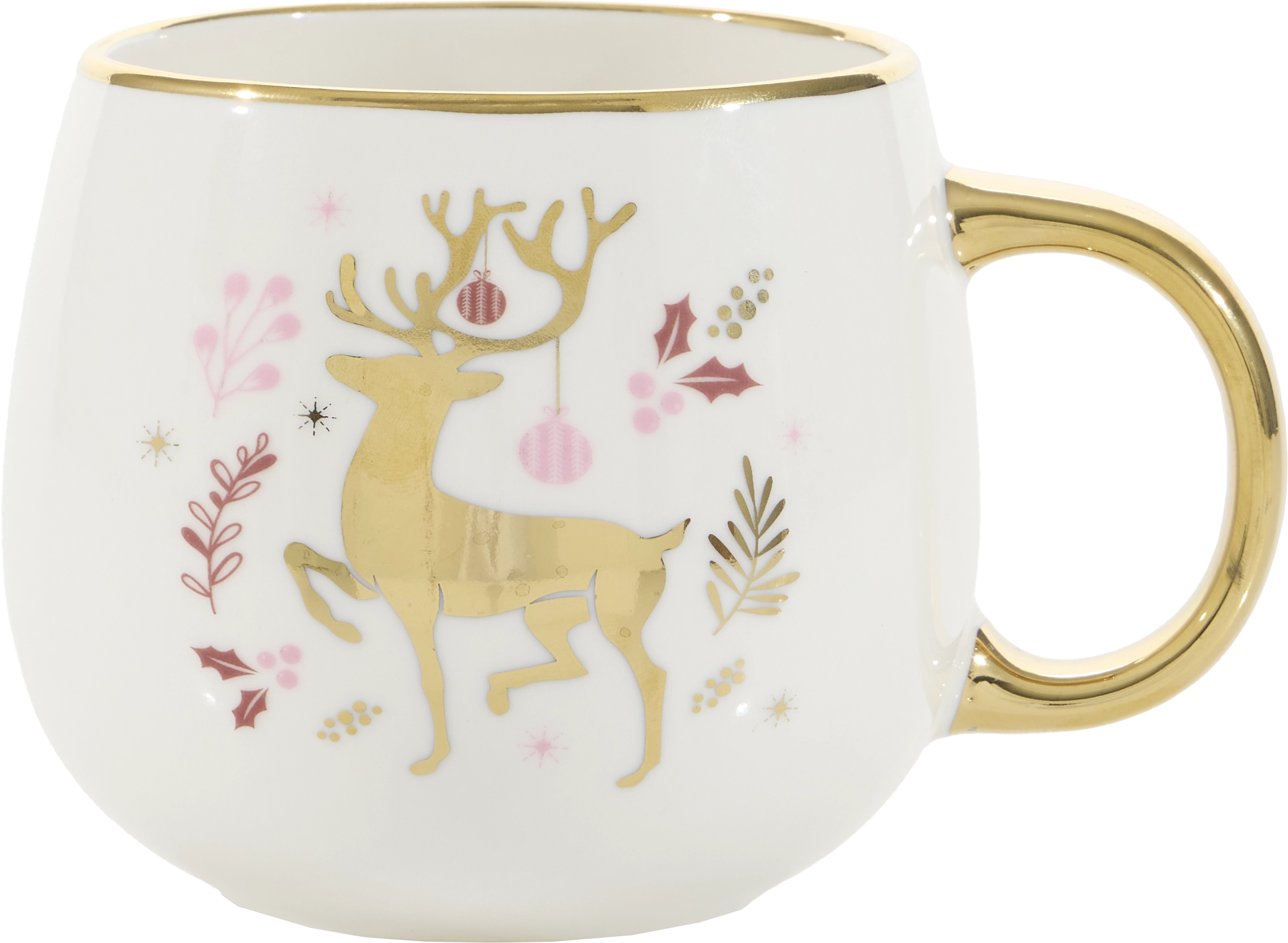Kubek CHRISTMAS 137 to stylowy i elegancki kubek w kolorach białym i złotym, inspirowany świątecznym klimatem. Wykonany z wysokiej jakości materiału, zachwyca subtelnym zdobieniem i połyskiem, który dodaje mu wyjątkowego charakteru. Doskonale sprawdzi się do serwowania ulubionych napojów podczas zimowych dni. Pojemność: 500 ml.