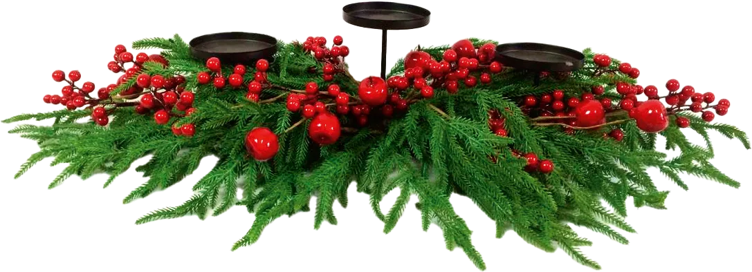 Dekoracja bożonarodzeniowa – świecznik MERRY CHRISTMAS 5 to klasyczna ozdoba świąteczna w kolorach zielonym i czerwonym, przeznaczona na trzy świece. Bogato zdobiony detalami, wprowadza do wnętrza ciepły i tradycyjny klimat Bożego Narodzenia. Doskonale prezentuje się jako dekoracja stołu, komody lub parapetu, tworząc elegancką i nastrojową aranżację. Długość: 75 cm.