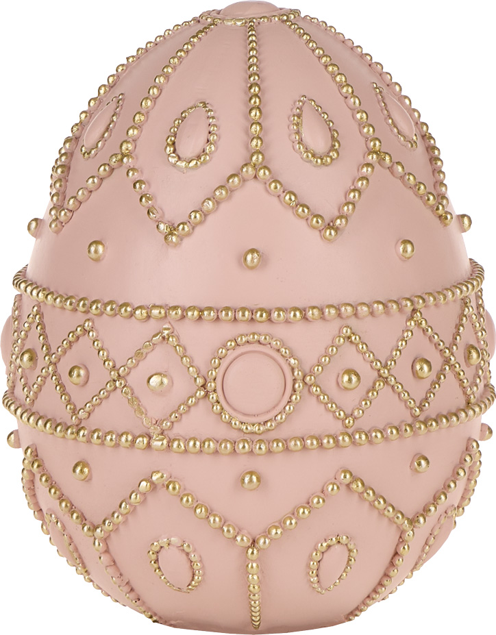 Ozdoba wielkanocna jajko PINK EASTER to elegancki element dekoracyjny, który wprowadzi świąteczny blask do Twojego wnętrza. Połączenie różu i złota nadaje mu stylowy i nowoczesny wygląd, idealnie komponujący się z wielkanocnymi aranżacjami. Doskonale sprawdzi się jako ozdoba stołu, komody lub stroika, dodając wnętrzu subtelnej elegancji i wiosennego uroku.