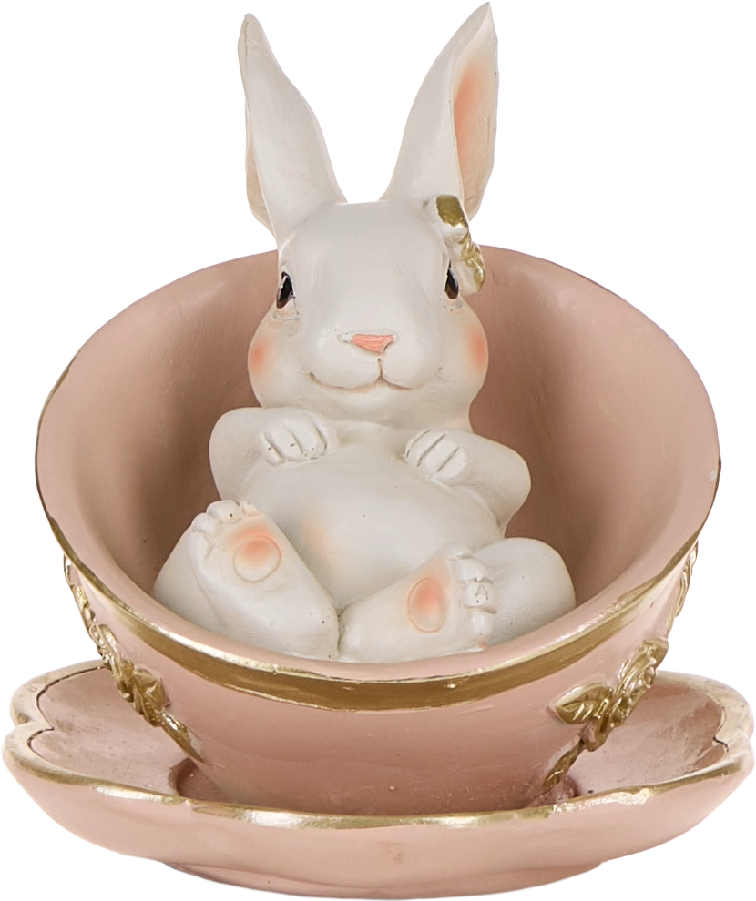 Ozdoba wielkanocna królik w filiżance Pink Easter 35 (różowy/biały/złoty)