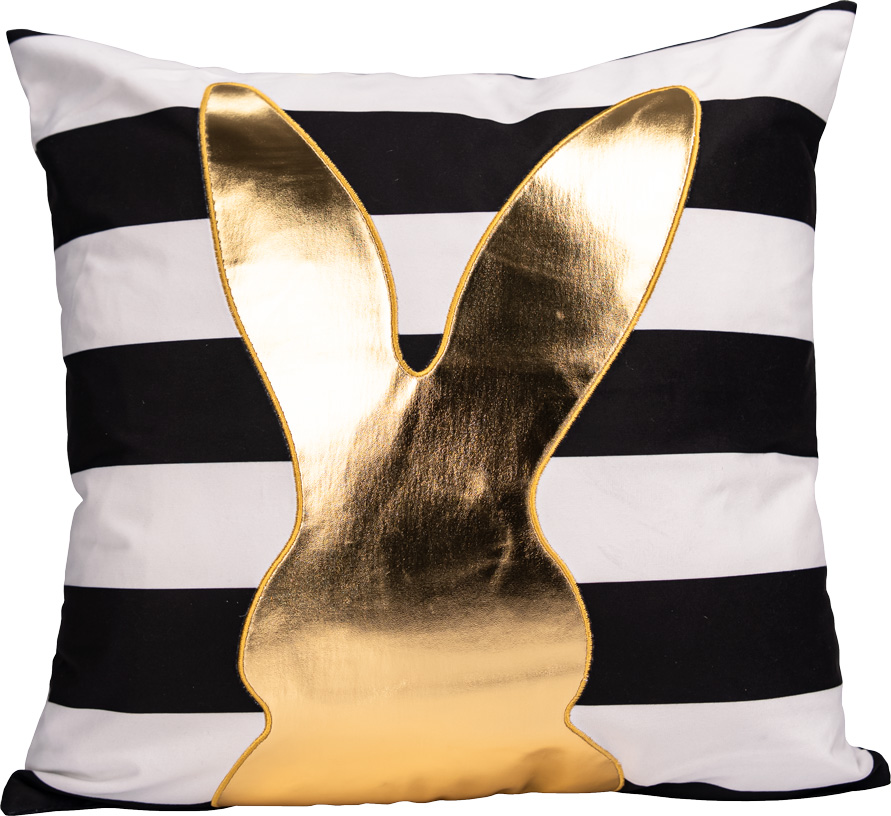 Poszewka na poduszkę "EASTER"-183 w kolorach biały, czarny i złoty to elegancki i stylowy dodatek do wielkanocnej aranżacji wnętrza. Wymiary 45 x 45 cm sprawiają, że pasuje na standardowe poduszki dekoracyjne. Nowoczesne połączenie kolorów i subtelny wzór nadają wnętrzu wyjątkowego charakteru, doskonale komponując się zarówno z klasycznymi, jak i nowoczesnymi aranżacjami. Idealna na świąteczny czas, wprowadzając elegancki i świąteczny klimat.