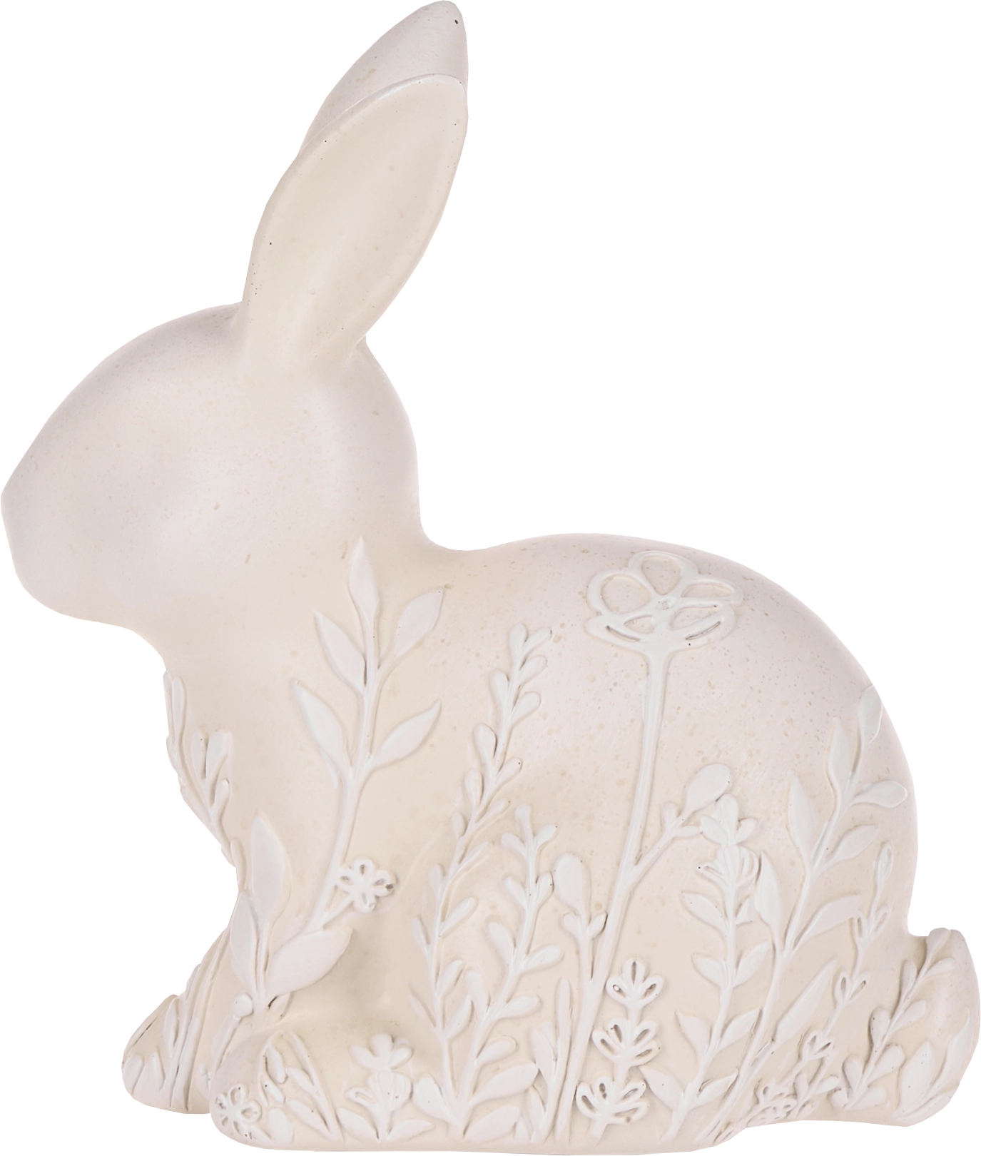 Ozdoba wielkanocna "EASTER"-60 to uroczy królik wykonany z żywicy w beżowym kolorze. Wymiary 18,5 x 10,5 x 20 cm sprawiają, że idealnie nadaje się jako dekoracja na stół, komodę czy parapet, wprowadzając do wnętrza świąteczny i przytulny klimat.