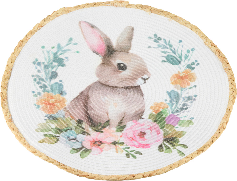 Mata stołowa (okrągła) „EASTER”-44 to uroczy i dekoracyjny dodatek, który doskonale uzupełni wiosenne i wielkanocne aranżacje stołu. Utrzymana w klasycznym białym kolorze i ozdobiona subtelnym motywem królika, wprowadza do wnętrza lekki, świąteczny klimat.