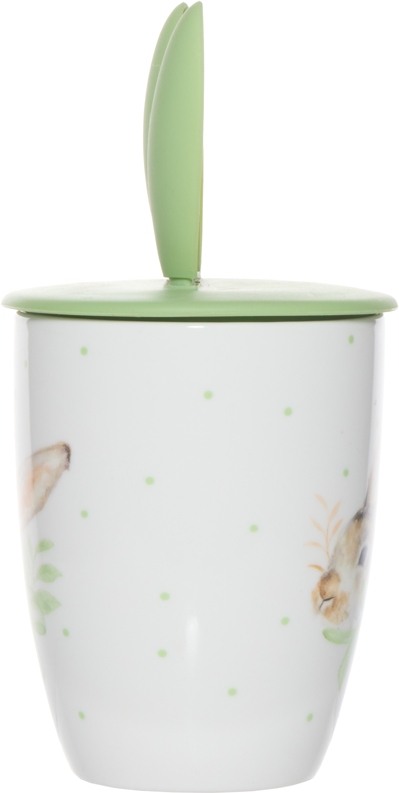 Kubek wielkanocny „EASTER”-173 to funkcjonalny i uroczy dodatek, który idealnie wpisuje się w wiosenny, świąteczny klimat. Utrzymany w biało-zielonej kolorystyce, ozdobiony motywem królika, przyciąga uwagę świeżym i radosnym designem.