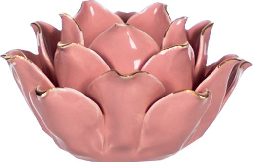 Ceramiczny, ozdobny świecznik w kształcie kwiatu z kolekcji Altigo w kolorze różowym to wyrafinowany dodatek wyposażenia wnętrz. Światło padające poprzez płatki umili każdy wieczór ciesząc oko. Piękny, subtelny motyw kwiatu w całej kolekcji podkreśli wyjątkowość produktu i nada wnętrzom ujmującego uroku. Złote, delikatnie zarysowane wykończenie dopełni całości.