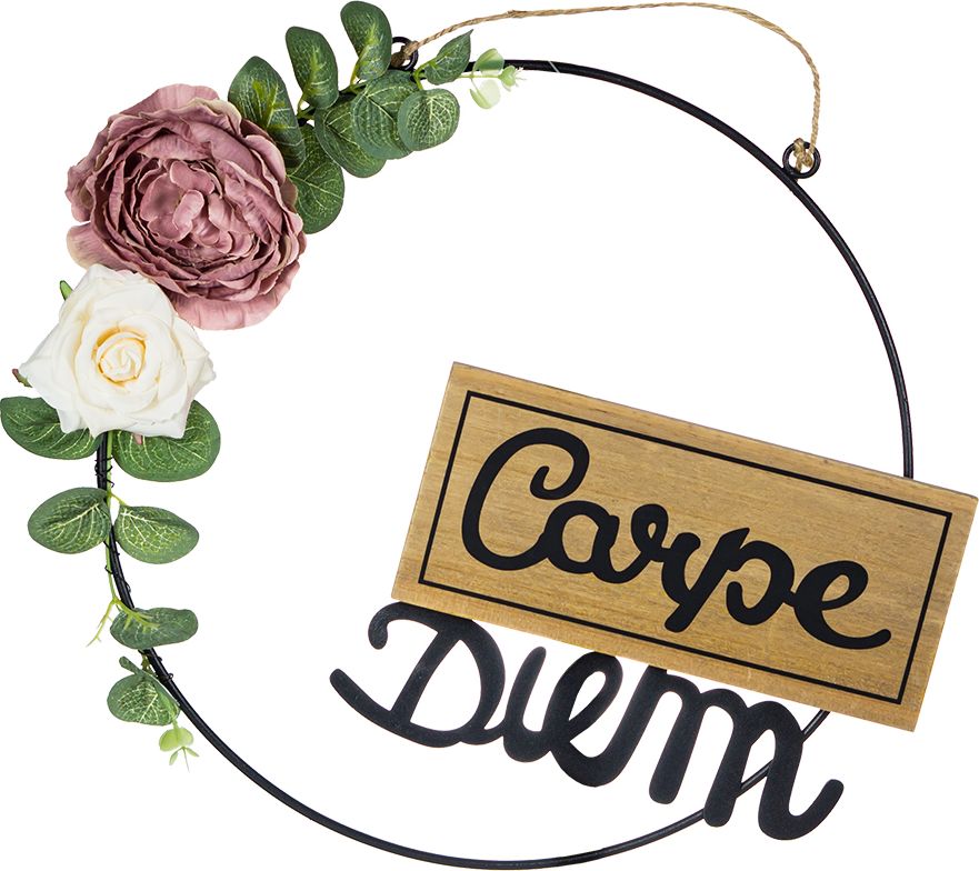 Metalowa dekoracja CARPE DIEM z kolekcji Mirsano doskonale ozdobi ścianę, drzwi lub okno.