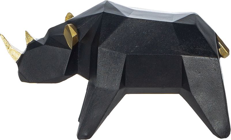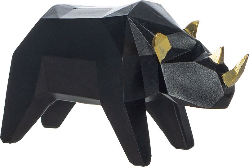 Figurka mały nosorożeć w kolorze czarnym ze złotymi dodatkami doda elegancji każdemu wnętrzu. Wniesie akcent glamour do pomieszczenia. Doskonale sprawdzi się na stole czy komodzie. Figurka została wykonana ręcznie.