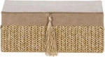 Elegancka i stylowa szkatułka na biżuterię lub drobiazgi. Wykonana z zamszu, w beżowym kolorze, z frędzelkami. Delikatne wykończenie pasuje idealnie do stylistyki boho. Będzie wspaniałym dodatkiem w sypialni, bądź w pokoju młodzieżowym.