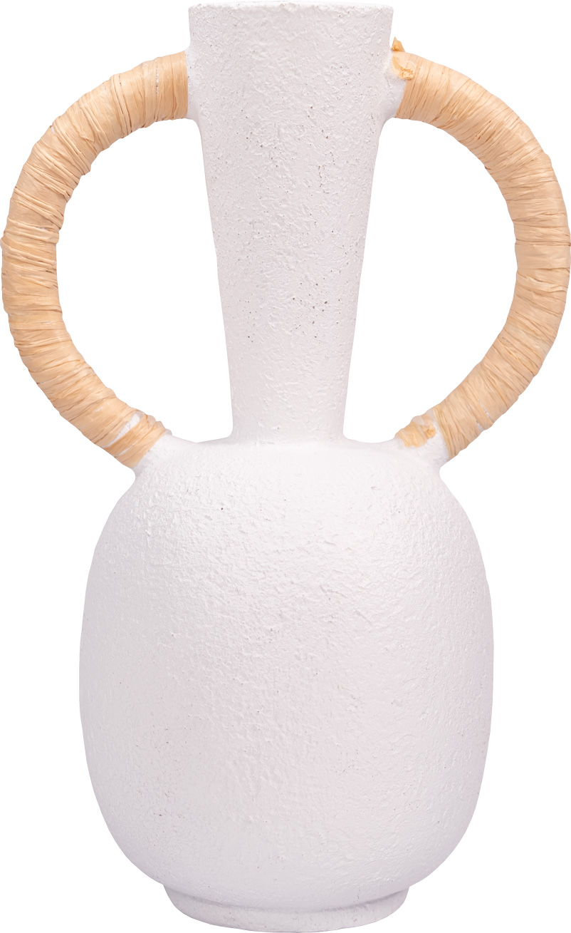 Wazon dekoracyjny "PEARL"-40 w kolorze białym z akcentem w odcieniu drewna to stylowy element wnętrzarski. Jego wymiary 16 x 12 x 25,5 cm sprawiają, że doskonale nadaje się do eksponowania kwiatów lub jako samodzielna ozdoba. Połączenie bieli z naturalnym akcentem drewna nadaje mu elegancki i nowoczesny charakter, idealnie komponujący się z różnymi aranżacjami wnętrz.