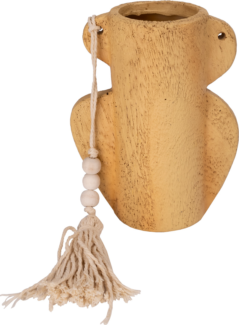 Wazon dekoracyjny (mały) "SOHO"-36 z koralikami to elegancki i stylowy dodatek do wnętrza. Wykonany z żywicy w kolorze drewna, łączy naturalny wygląd z nowoczesnym designem. Jego kompaktowe wymiary 11,5 x 6,5 x 14,6 cm sprawiają, że doskonale nadaje się do dekoracji stołu, półki lub komody. Subtelne detale i ciepła kolorystyka czynią go uniwersalnym elementem pasującym do różnych aranżacji wnętrz.