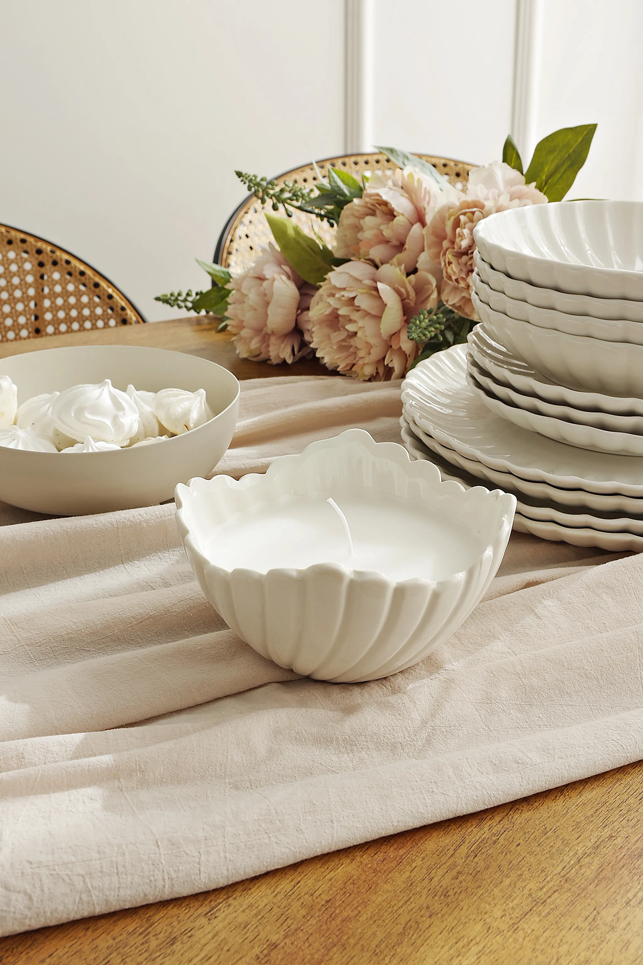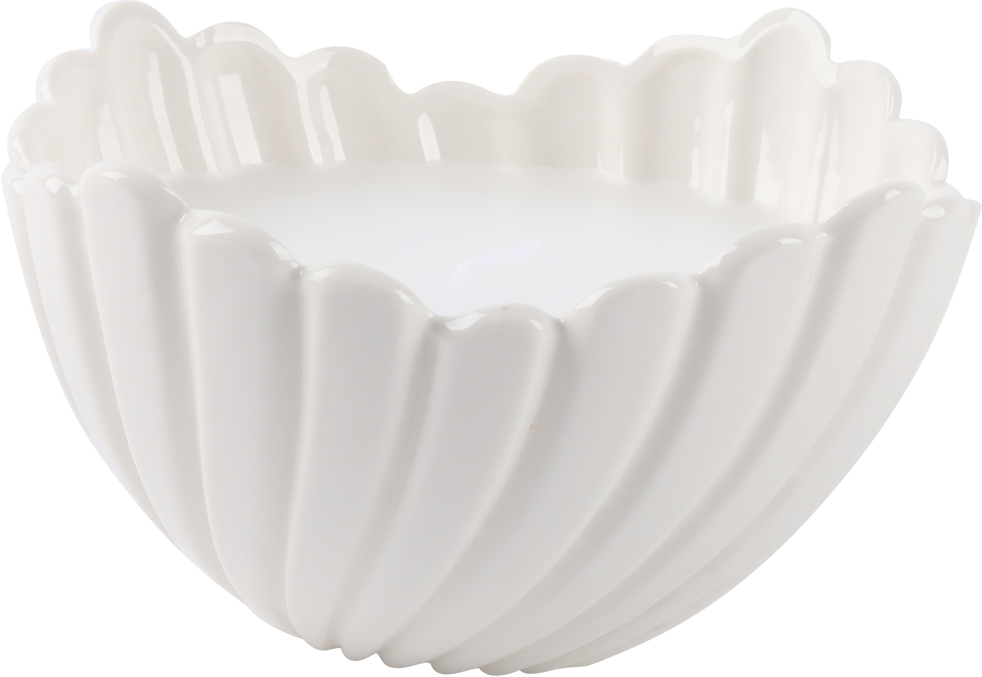 Świeca woskowa o zapachu wanilii w ceramicznej miseczce "PEARL"-35 w kolorze białym to elegancki i stylowy dodatek do wnętrza. Jej wymiary 15,5 x 15,2 x 8,8 cm sprawiają, że doskonale prezentuje się na stole, komodzie czy półce. Delikatny aromat wanilii tworzy przytulną atmosferę, a minimalistyczny design ceramicznej miseczki idealnie komponuje się z nowoczesnymi i klasycznymi aranżacjami wnętrz.
