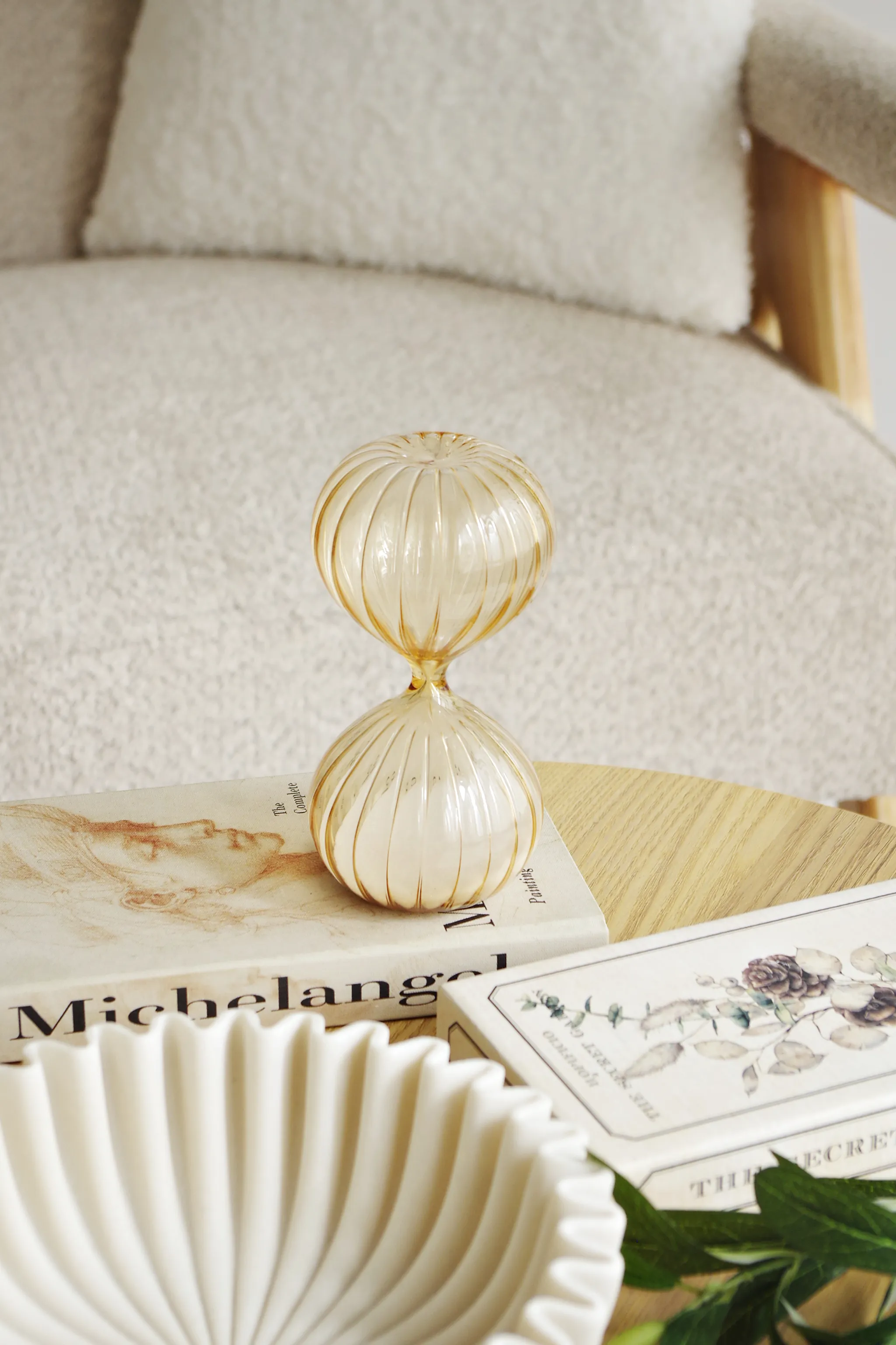 Szklana klepsydra "SOHO"-1 w kolorze beżowym to elegancki i stylowy element dekoracyjny. Jej wymiary 7,5 x 7,5 x 14,8 cm sprawiają, że doskonale prezentuje się na biurku, półce lub komodzie. Subtelny design i delikatna kolorystyka nadają wnętrzu harmonii i klasycznego uroku. Idealna jako ozdoba lub praktyczny gadżet do odmierzania czasu.