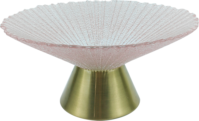 Miska szklana na nóżce LINDOS-19 w kolorze różowym ze złotymi akcentami to dekoracyjny element o wymiarach 25 x 25 x 12 cm. Subtelne barwy i eleganckie wykończenie nadają jej luksusowego charakteru. Doskonale sprawdzi się jako ozdobna misa na stół lub komodę, pasując do wnętrz urządzonych w stylu nowoczesnym lub klasycznym.