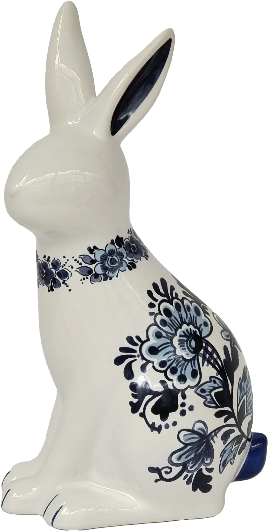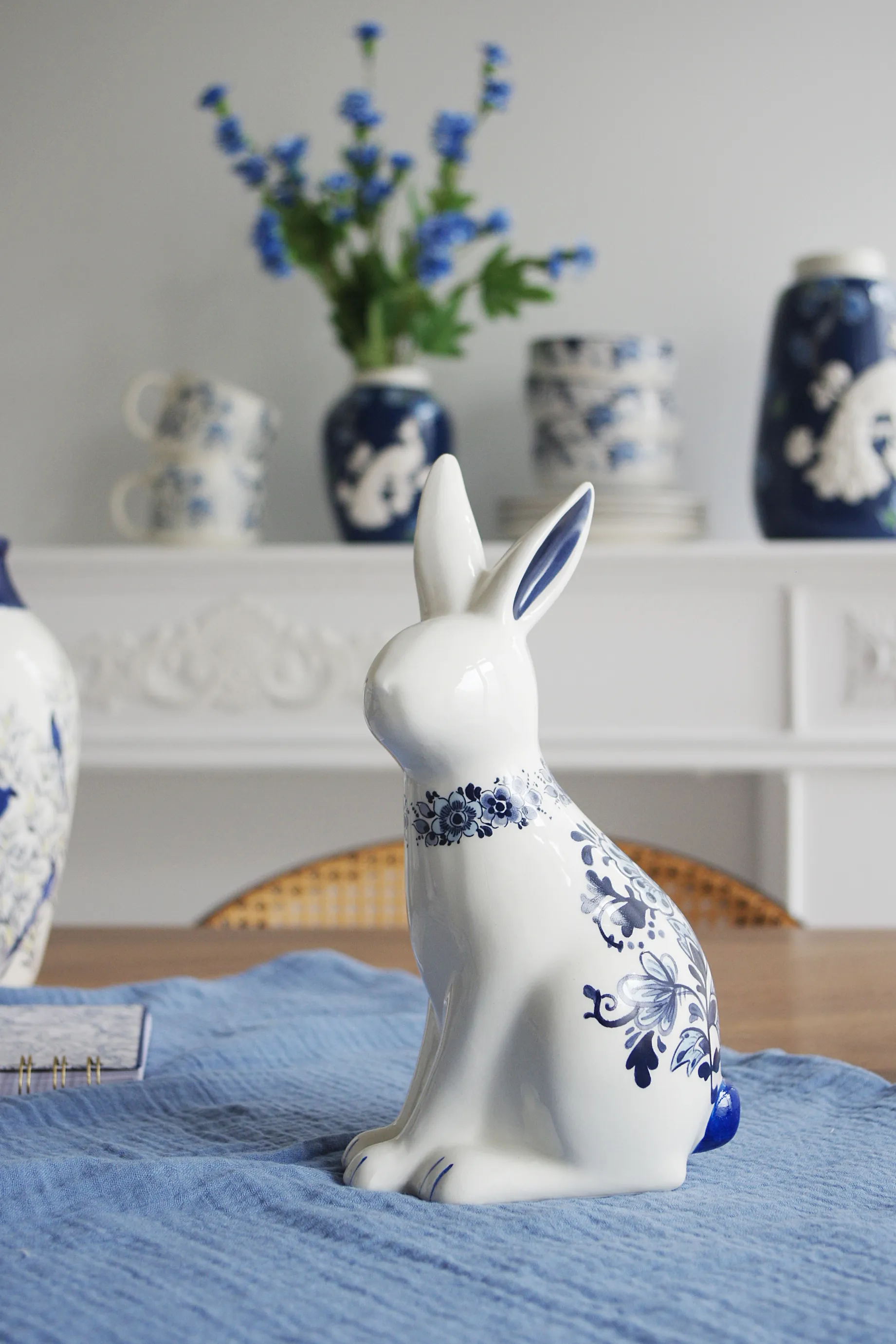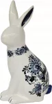Ozdoba "BLUE EASTER"-62 to uroczy królik wykonany z ceramiki w kolorze niebiesko-białym. Wymiary 13,5 x 10 x 24 cm sprawiają, że świetnie prezentuje się na stole lub komodzie, wprowadzając świeży i radosny akcent do wnętrza.