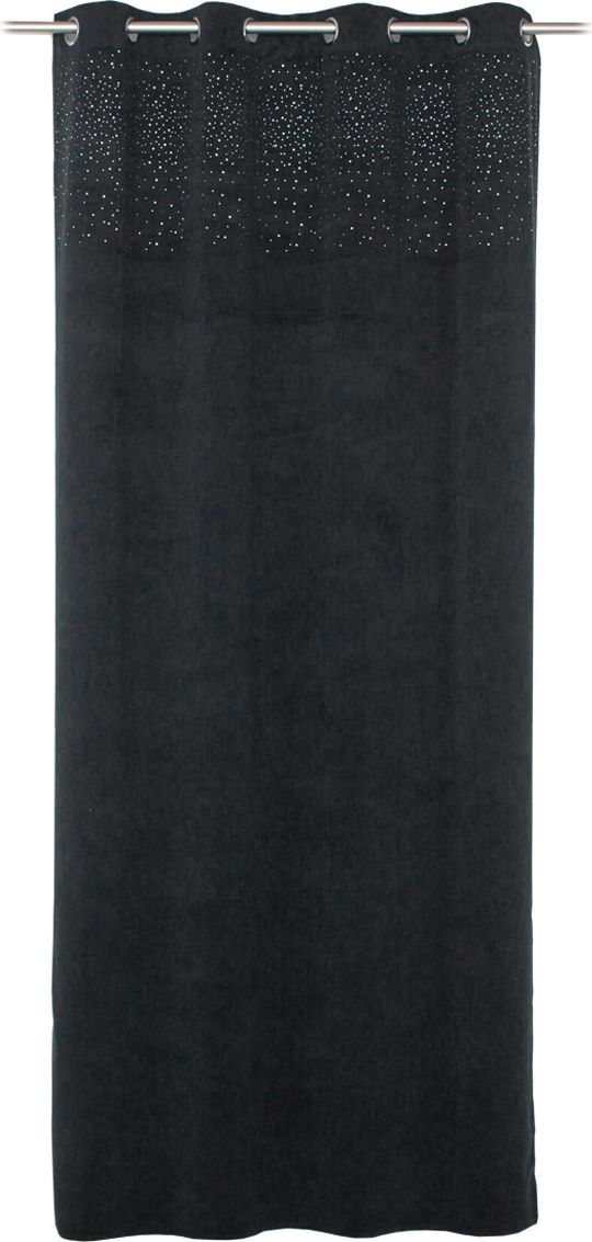 Jest bardzo elegancka, co doda stylizacji okna efekt glamour. Wykonana została z tkaniny welurowej, która zaciemnia pomieszczenie. Charakteryzuje się przyjemną w dotyku strukturą. Ta stylowa i nowoczesna zasłona w górnej części posiada piękne kryształki, które dodają jej wyjątkowego wyglądu i blasku. Mocowana jest na 8 chromowanych srebrnych przelotkach o średnicy 4 cm.