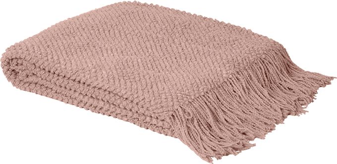 Komfortowy, miły w dotyku oraz ciepły koc akrylowy z frędzlami.
