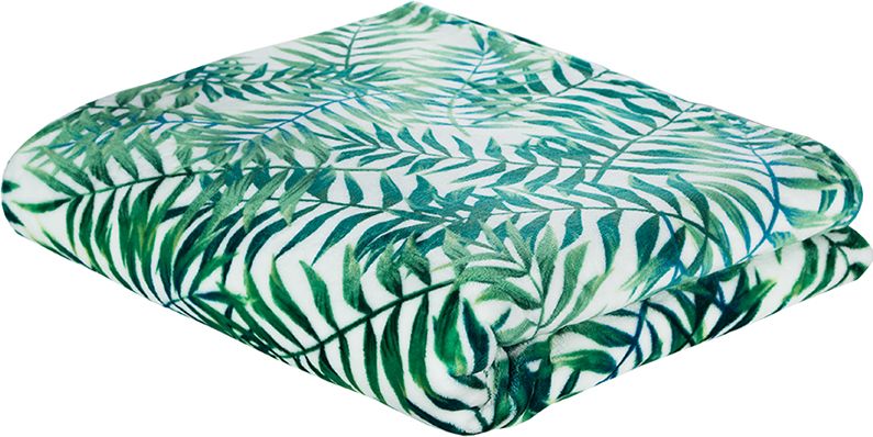 Komfortowy, miły w dotyku oraz ciepły koc, z wzorem liści wykonany z flaneli o wysokiej gramaturze.