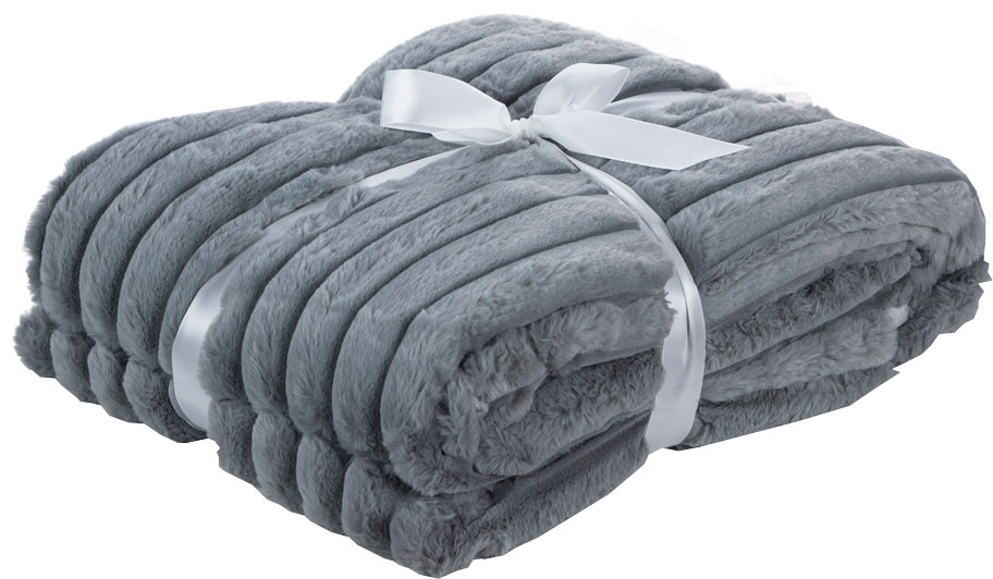 Komfortowy, miły w dotyku oraz ciepły kocyk w kolorze szarym