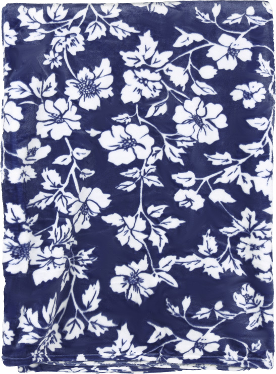 Koc flanelowy Blue Flowers 36 (granatowy/biały)