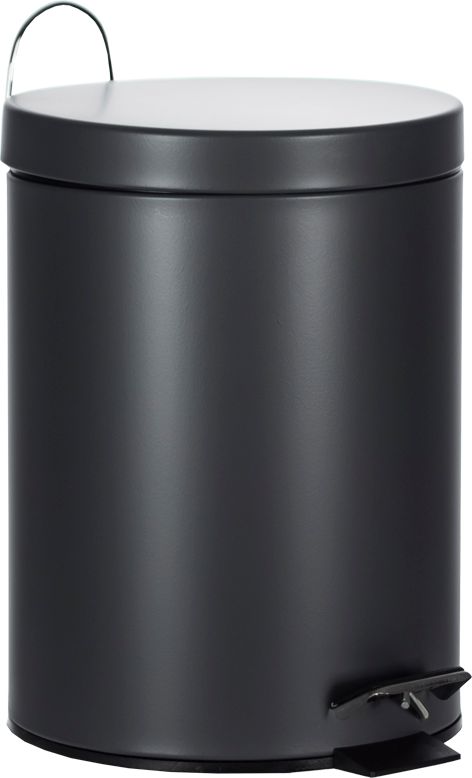 Funkcjonalny kosz na śmieci Doni gładki o pojemności 5L. Otwierany przełącznikiem nożnym. Wykonany ze stali proszkowanej posiada plastikową podstawę.