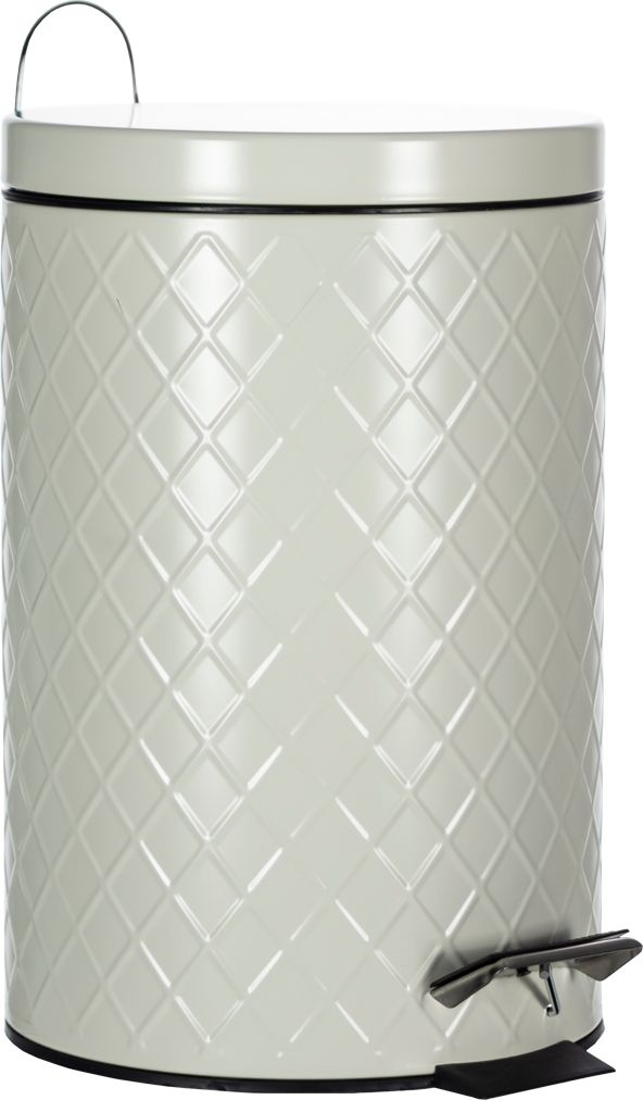 Funkcjonalny kosz na śmieci Doni z wzorem diamentu o pojemności 12L. Otwierany przełącznikiem nożnym. Wykonany ze stali proszkowanej posiada plastikową podstawę oraz błyszczące wykończenie.