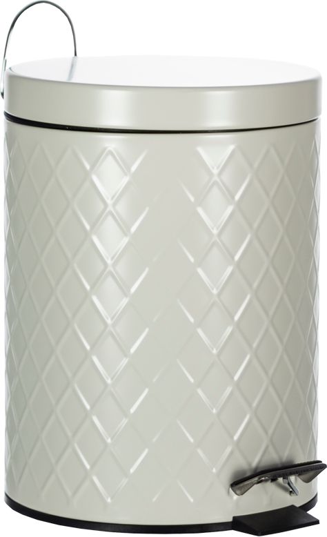 Funkcjonalny kosz na śmieci Doni z wzorem diamentu o pojemności 5L. Otwierany przełącznikiem nożnym. Wykonany ze stali proszkowanej posiada plastikową podstawę oraz błyszczące wykończenie.