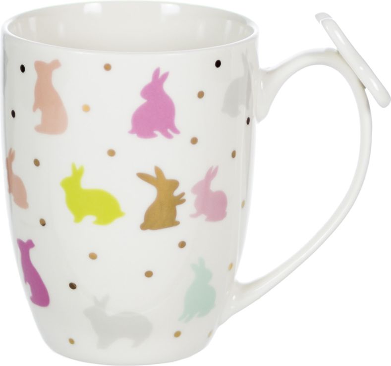 Kolorowy kubek z motywem zajączków wielkanocnych wprowadzi do domu wiosenny nastrój świąt. Wyjątkową dekorację kubka stanowi mały zajączek na uchwycie.