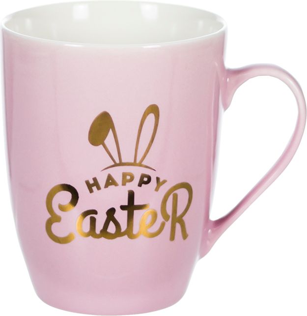 Różowy kubek z motywem wielkanocnym wprowadzi do domu wiosenny nastrój świąt.