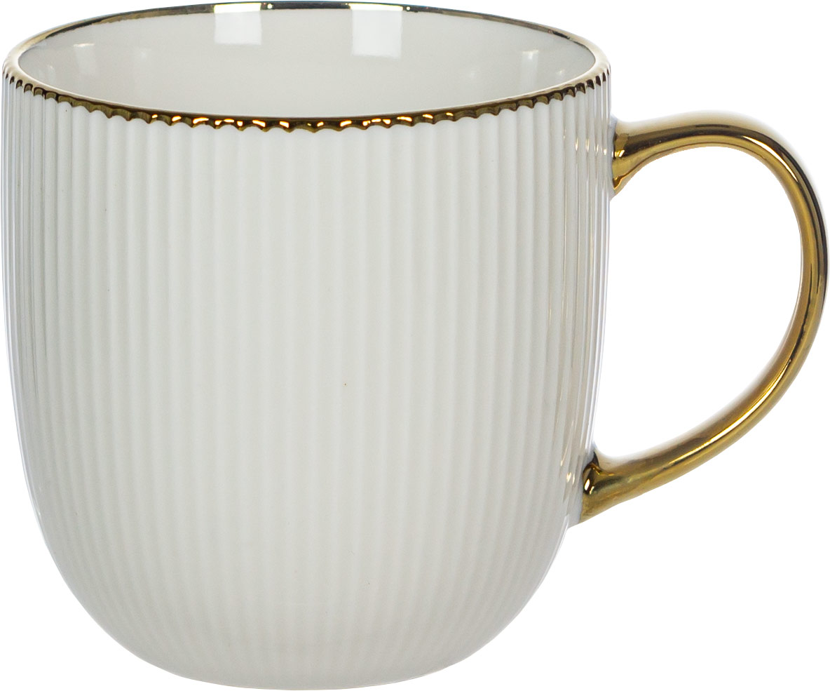 Kubek ryflowany to elegancki dodatek, który zachwyca swoją prostotą i wyrafinowaniem. Wykonany w klasycznym białym kolorze z subtelnym ryflowanym wzorem, zyskuje wyjątkowy charakter dzięki stylowej złotej rączce. Pojemność 400 ml sprawia, że jest idealny na ulubioną kawę, herbatę czy gorącą czekoladę. Ten kubek łączy w sobie funkcjonalność i estetykę, doskonale wpisując się w nowoczesne i klasyczne aranżacje stołu. Świetny pomysł na prezent lub uzupełnienie codziennej zastawy.